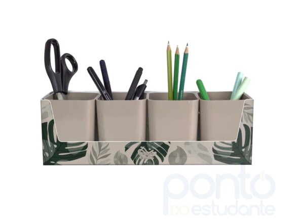 O Kit Porta Objeto Folhagem é uma solução charmosa e prática para organizar seus itens pessoais com estilo. Com design inspirado na natureza, o kit apresenta detalhes de folhagens que adicionam um toque verde e refrescante ao ambiente. Ideal para escritórios, salas de estar, quartos ou qualquer espaço que precise de organização e decoração, o kit pode ser utilizado para armazenar uma variedade de itens, como canetas, lápis, chaves, cosméticos, acessórios e outros objetos do dia a dia. Feito com materiais duráveis e de fácil manutenção, o Kit Porta Objeto Folhagem é perfeito para quem busca funcionalidade e um toque natural e sofisticado na decoração. Compacto e elegante, ele combina perfeitamente com ambientes modernos ou de estilo mais aconchegante.